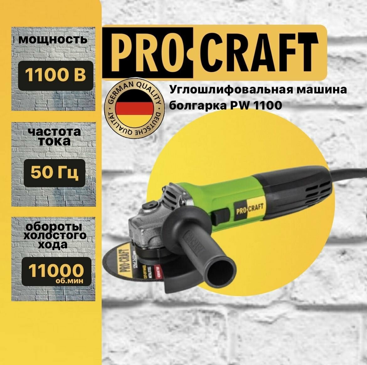 Лучшие цены. Углошлифовальная машина Procraft PW1100 125 мм представляет собой инструмент бытового класса с высокой производительностью. Способна проработать в течение длительного срока при условии соблюдения всех правил эксплуатации. Область применения Инструмент предназначен для выполнения таких работ, как резка, шлифование, полировка поверхностей разных материалов. Подходит для работы с такими поверхностями: Металл; Дерево; Природный камень; Керамика. Магазины в вашем городе.