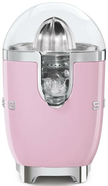 SMEG, Электрическая соковыжималка для цитрусовых CJF11PKEU, каплезащитный носик и универсальный конус, нескользящие ножки, сетчатый фильтр из нержавеющей стали и пресс-конус, 70 Вт, розовый