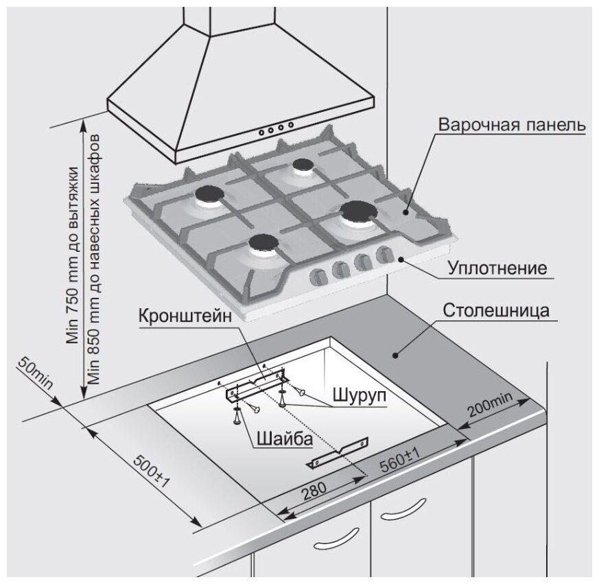| Размеры для встраивания (ШхГ) | 550x480 мм |