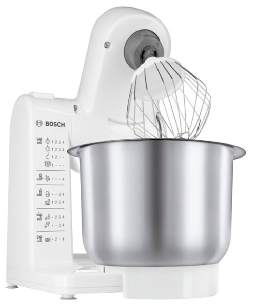 Кухонная машина Bosch MUM4407, 500 Вт, 3.9 л, 4 скорости, 3 насадки, бело-серая