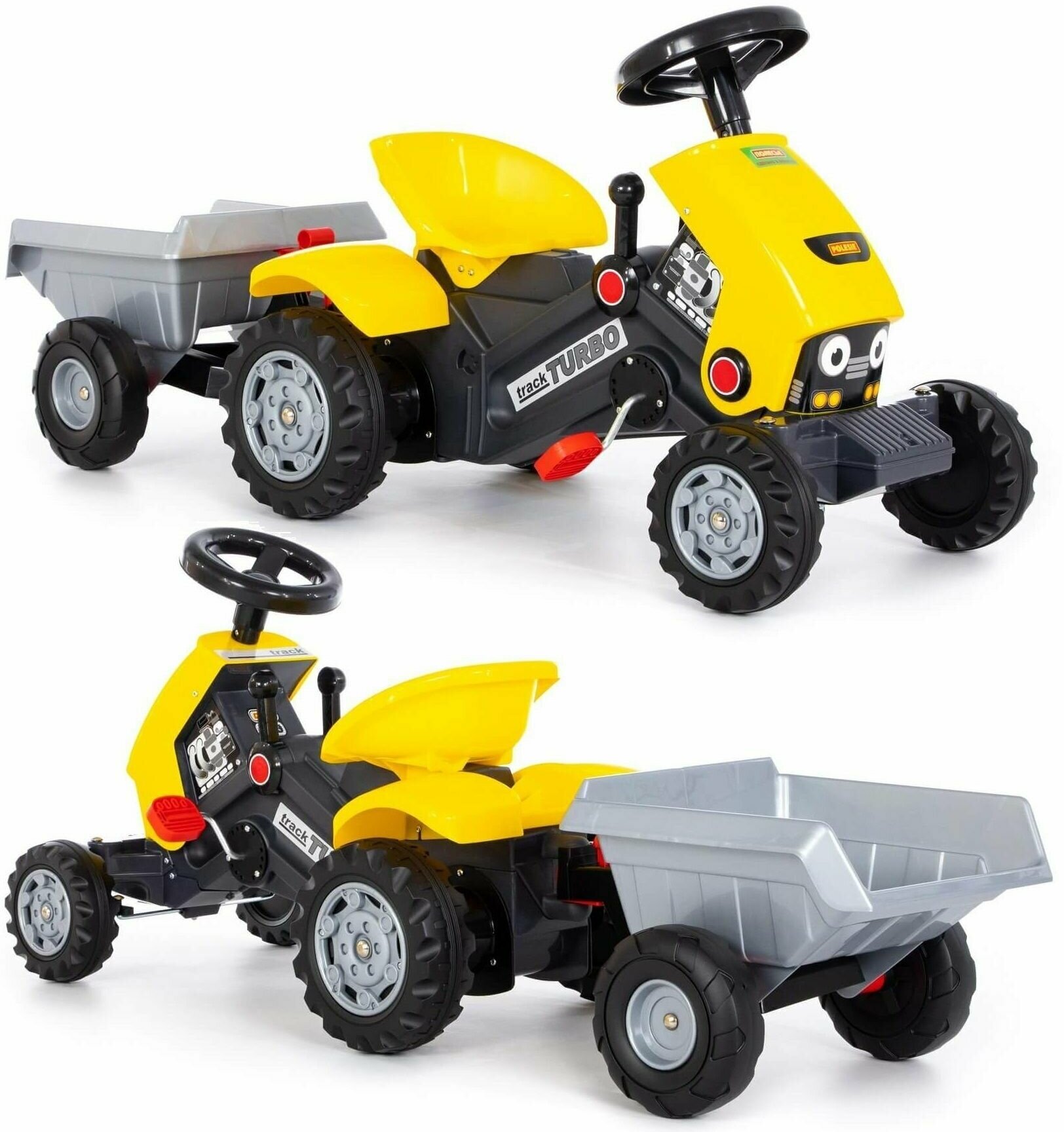 Лучшие цены. Педальная каталка-трактор «Turbo-2» c полуприцепом приводится в движение при помощи цепного механизма. На мини-тракторе установлена имитация коробки передач, что придает каталке реалистичности. Катание на таком виде транспорта способствуют его физическому развитию, а также развивают его координацию движений. • В комплекте с каталкой поставляется полуприцеп. При помощи прицепа ребенок сможет перевозить урожай или различные грузы. Магазины в вашем городе.