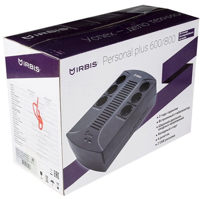 Источник бесперебойного питания IRBIS UPS Personal plus 600VA/360W, Line-Interactive, AVR, 6xSchuko outlets(3 Surge & 3 batt.), 2 USB charger, 2 year warranty 4 115 ₽ Подробнее