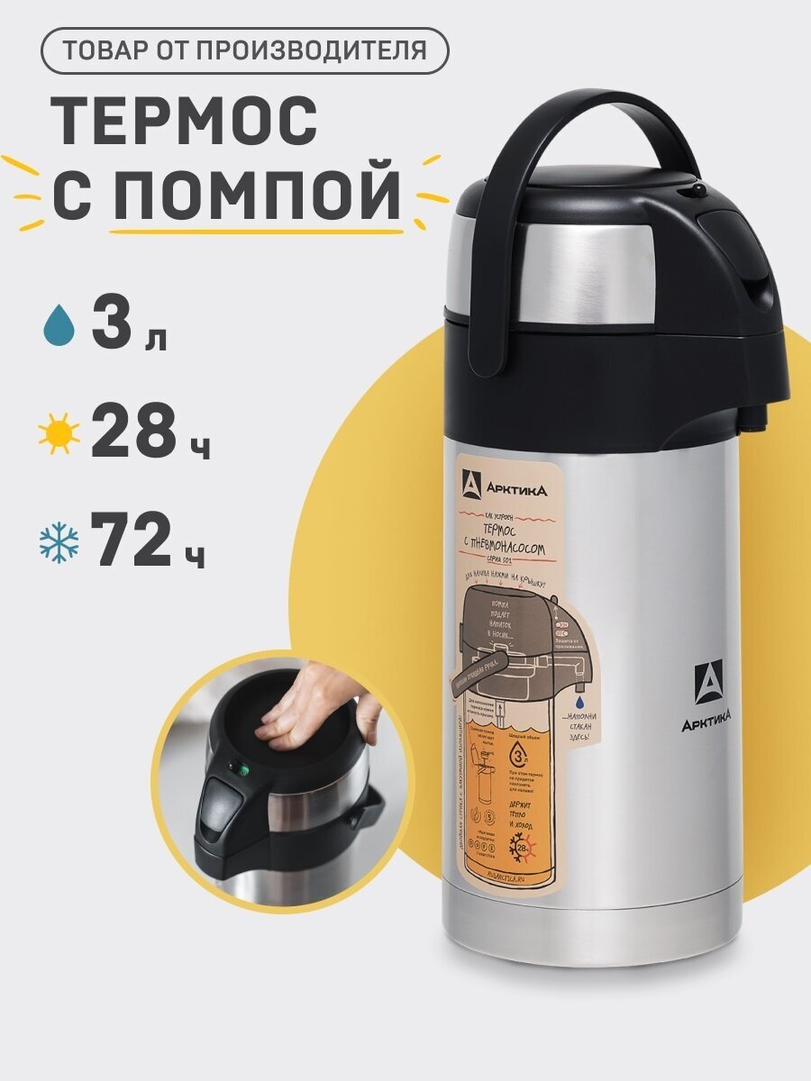 Термос арктика с пневмонасосом, 3000 мл., 501-3000, 31ч