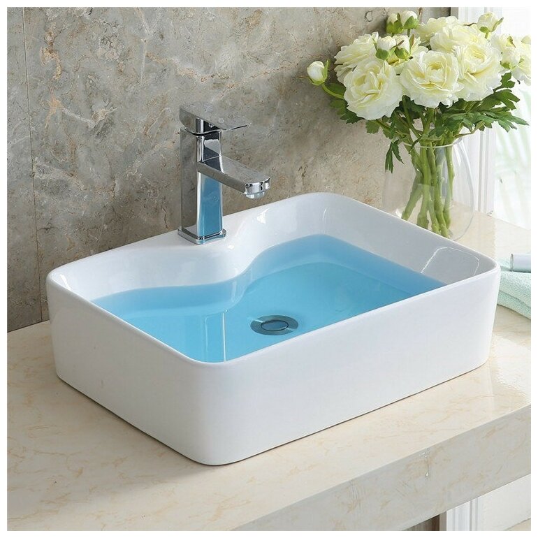 Умывальник Раковина для ванной, Mira MR-8025A, накладная, прямоугольная, в ванную, с антигрязевым покрытием