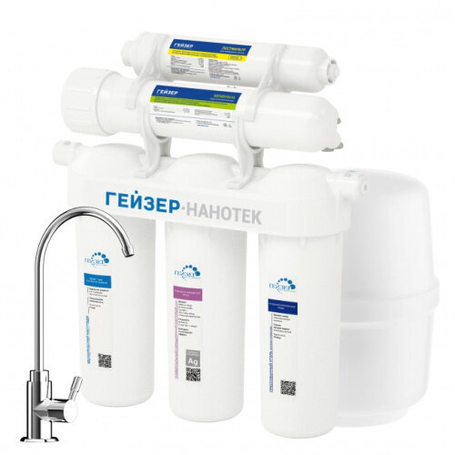 Лучшие цены. Система работает при давлении в подводящей магистрали не менее 3 атм.; Глубокая очистка воды, удаление бактерий и вирусов; Сохранение оптимального минерального состава воды; Идеальный вариант для семей с маленькими детьми; Снижение дренажного потока в 2 раза по сравнению с обратным осмосом; Не имеет аналогов на российском рынке. Гейзер Нанотек — это мембранный фильтр, конструктивно схожий с системами обратного осмоса. Основным его отличием является мембрана. Магазины в вашем городе.