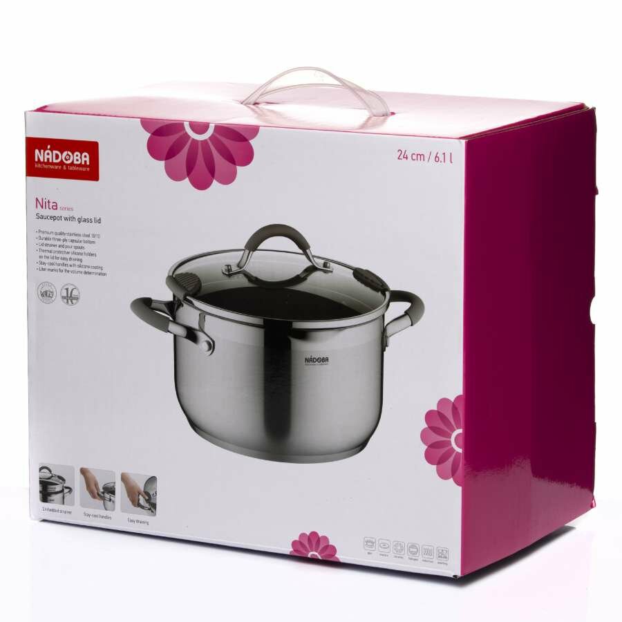 Кастрюля Nadoba NITA со стеклянной крышкой, 24 см/6,1 л