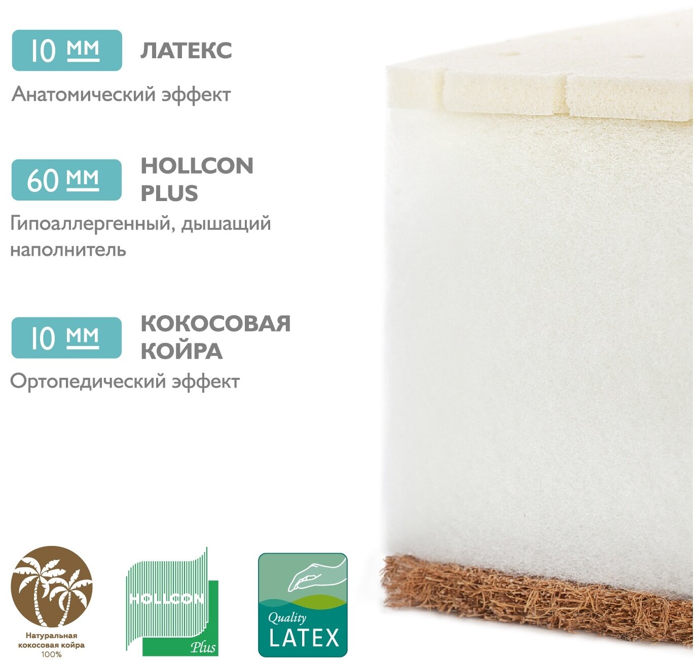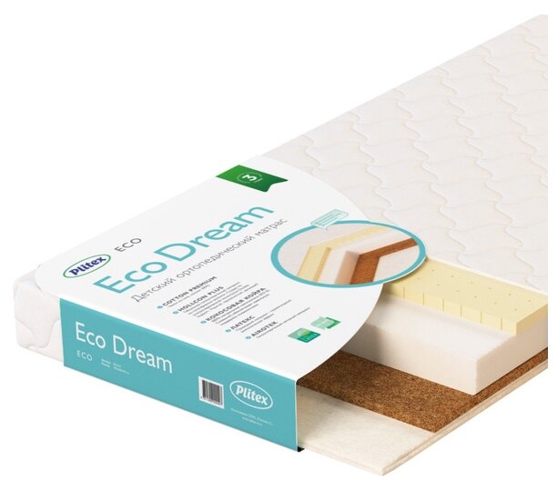 Лучшие цены. Детский матрас кокос Plitex EcoDream Характеристики: Съемный стеганый чехол из 100 % хлопка Плотная ткань из хлопка имеет повышенную прочность. Хорошо проводит воздух и влагу и быстро сохнет. Долго не изнашивается, не протирается и не теряет цвет. Простеганный на холлконе, чехол добавляет поверхности матраса мягкости и комфорта. Нетканый материал Airotek Экологически чистый гипоаллергенный материал без использования химических связующих. Магазины в вашем городе.