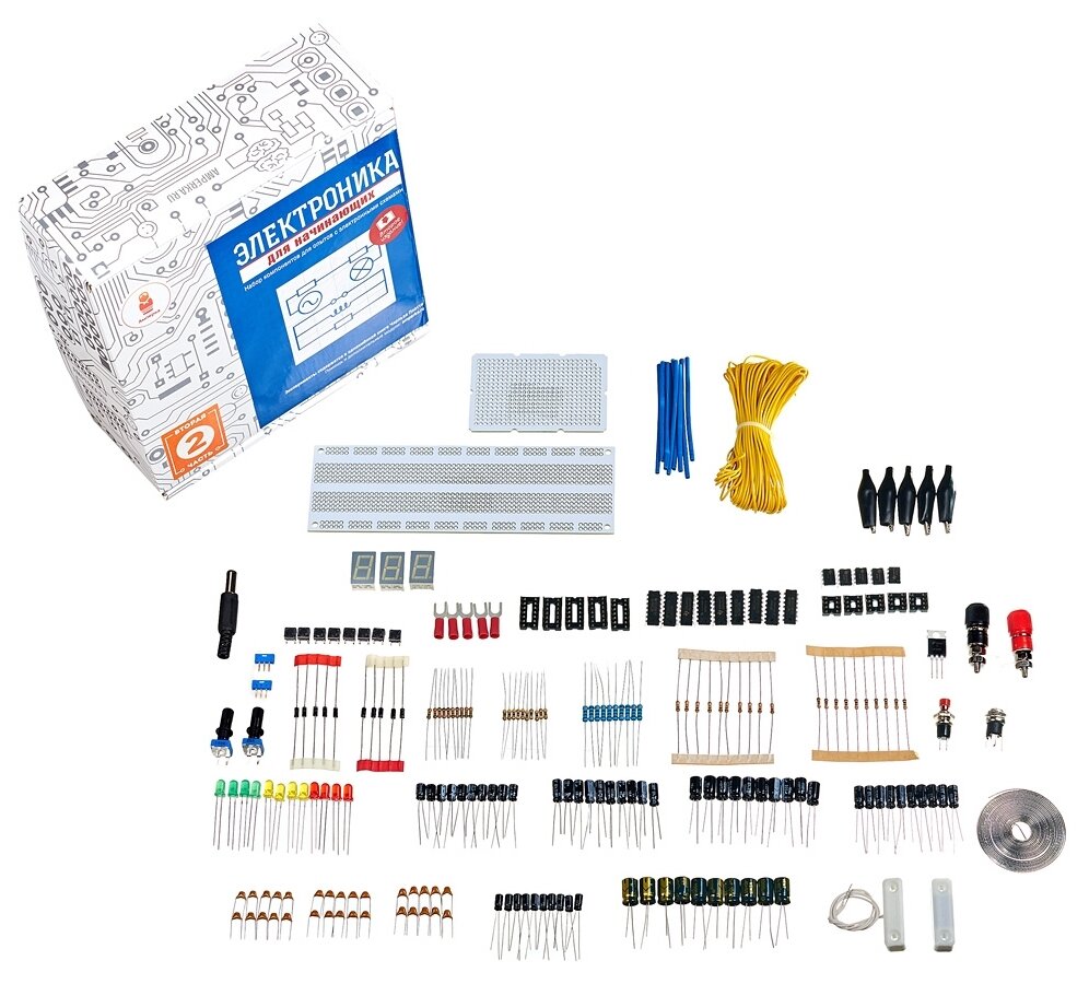 Лучшие цены. Электроника для начинающих — это готовый набор различных электронных компонентов, который позволит вам пройти эксперименты №12–25 по второму изданию замечательной книги Чарльза Платта (продаётся отдельно). Это вторая часть набора, которую имеет смысл приобретать только после или вместе с первой частью. Вторая часть позволит освоить пайку, работу с микросхемами, обработку сигналов. Своими руками вы соберёте несколько любопытных электронных устройств. Магазины в вашем городе.