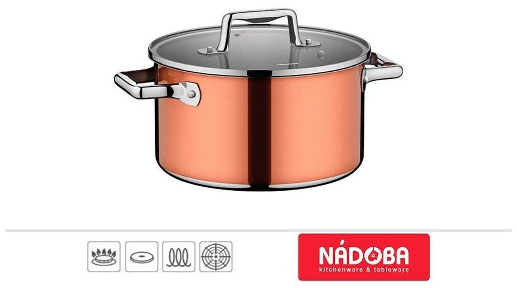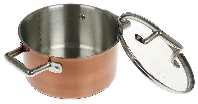 Лучшие цены. Кастрюля с крышкой Диаметр: 20 см Объем: 3.3 л Материал: Нержавеющая сталь 18/10, алюминий Цвет: медь Серия: Medena Тип плиты: для всех типов, вкл. индукционные Дно: нержавеющая сталь Ручки: нержавеющая сталь Крышка: закалённое стекло Особенности: Вся посуда серии M283; d283; n225; изготовлена из высококачественной нержавеющей стали 18/10. Прочное трехслойное капсульное дно изделий служит для равномерного распределения тепла по всей площади посуды. Магазины в вашем городе.