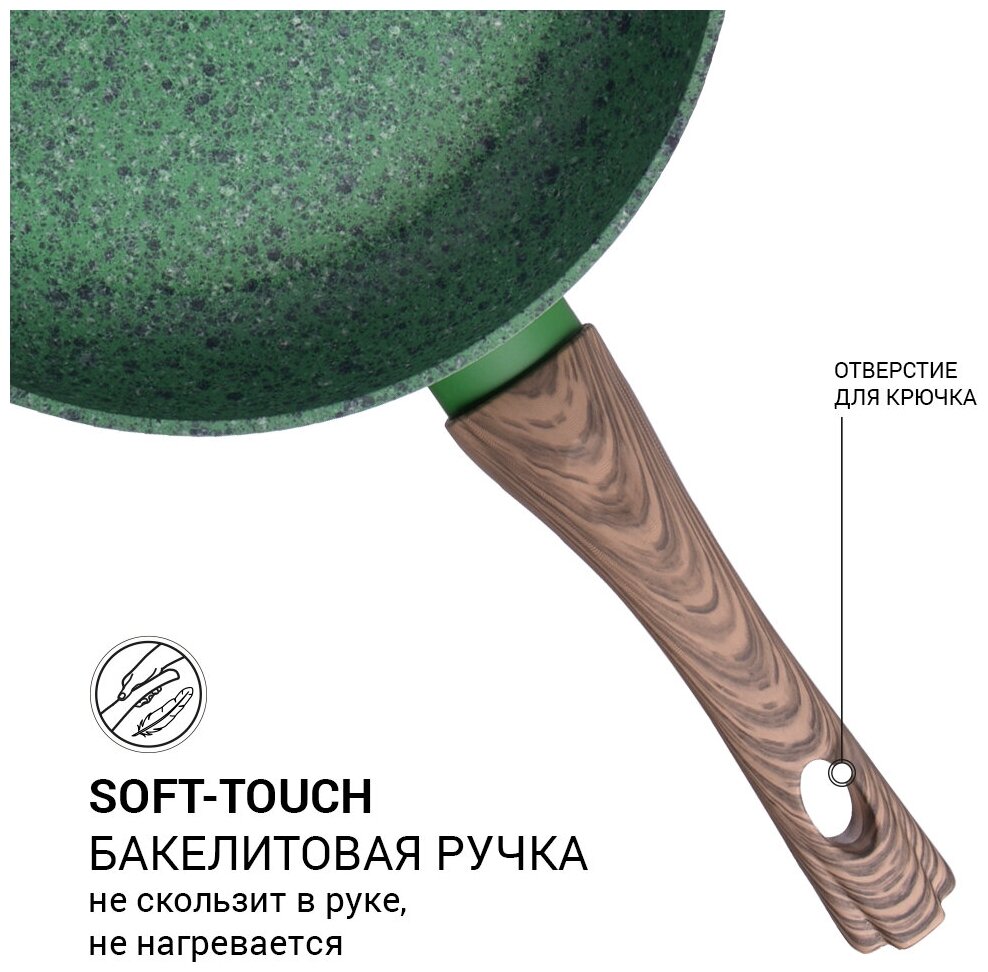 Сковородка 4313 FISSMAN Сковорода для жарки MALACHITE 28x5,4см (алюминий с антипригарным покрытием EcoStone) Ручка-бакелит с покрытием «Софт тач»; Индукция
