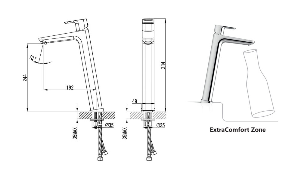 Лучшие цены. Подвижный аэратор позволяет отрегулировать струю в нужном направлении. Смеситель для умывальников увеличенной высоты (ExtraComfort Zone) предназначен для умывальников, которые размещаются на столешнице. Для комплексного решения ванной комнаты рекомендуется использовать смесители 10° в сочетании с аксессуарами и другими продуктами концепции 10°. Для наружной очистки рекомендуется использовать RAVAK Cleaner Chrome. Магазины в вашем городе.