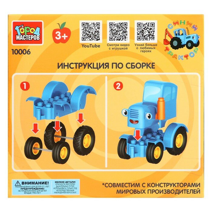 Конструктор Город мастеров Конструктор «Большие кубики», Синий трактор, 4 детали