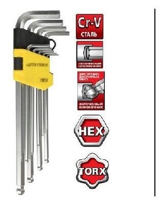 Набор длинных имбусовых ключей STAYER 9 шт. ( 2741-H9 )