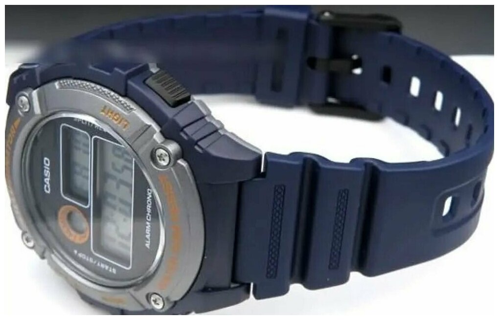 Лучшие цены. Мужские наручные часы Casio W-216H-2B кварцевые, приводящиеся в действие с помощью батарейки. Корпус пластиковый с синим циферблатом и пластиковым стеклом, браслет каучуковый ремешок. Модель Casio W-216H-2B обладает степенью влагостойкости 50 м (5 АТМ), где допустимо кратковременное погружение в воду, для плавания рассмотрите варианты от 100 м (10 АТМ). Циферблат подсвечивается необритовой подсветкой (Neobrite). Магазины в вашем городе.