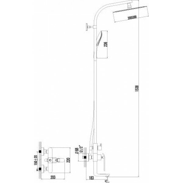| Комплектация | ручной душ (душевая лейка) / верхний душ (тропический) / смеситель / стойка / штанга / душевой шланг / крепление ручного душа |