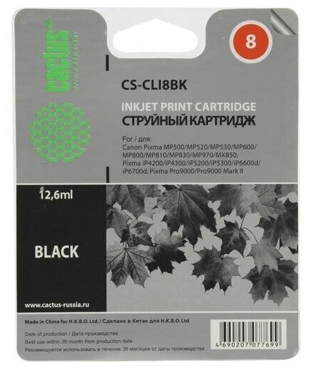 Картридж Cactus CS-CLI8BK, для Canon, 12,6 мл, черный