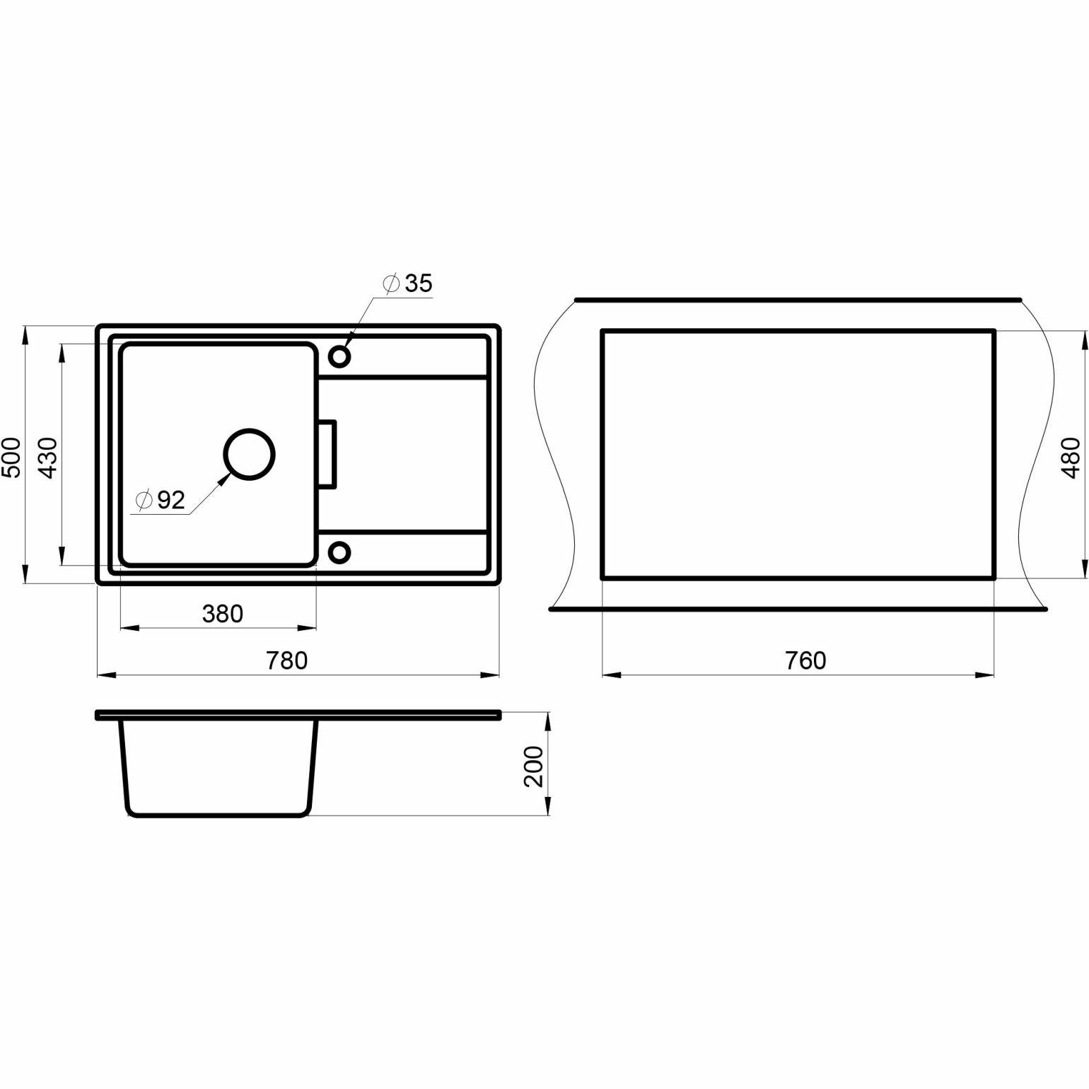 Кухонная мойка GR-7804 780*500мм черный