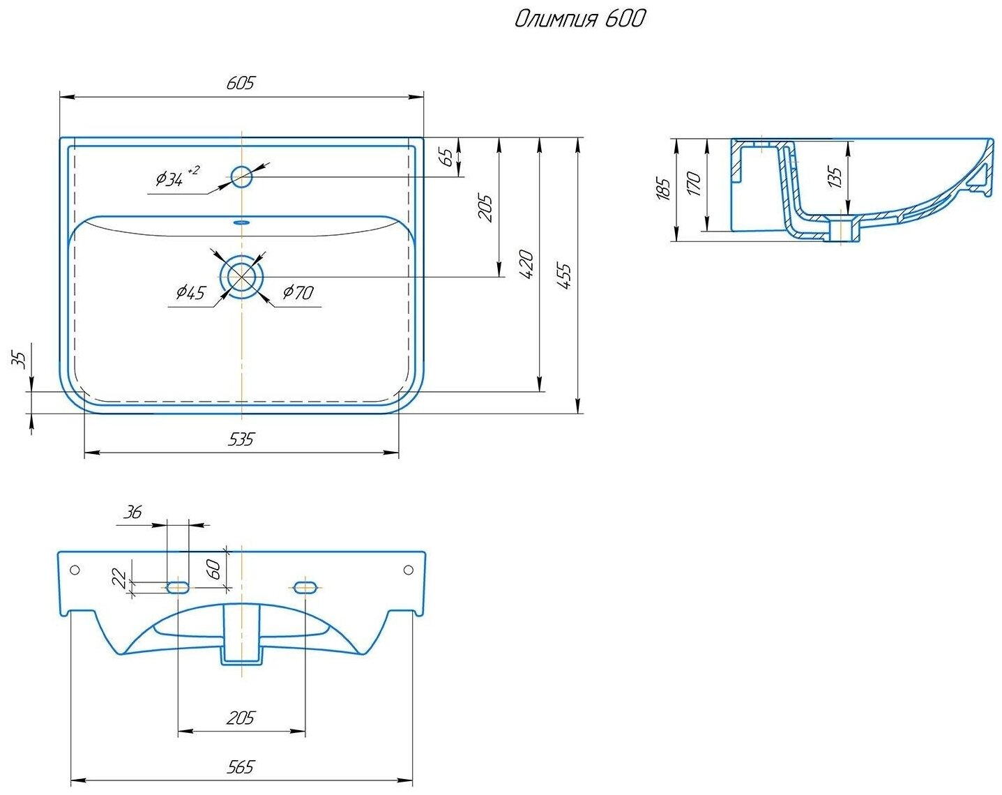 Лучшие цены. Габариты (шгв): 60,5x45,5x17 см полувстраиваемая фаянсовая 1 готов. отверстие под смес. диаметр слива: 4.2 см слив-перелив в компл. Магазины в вашем городе.