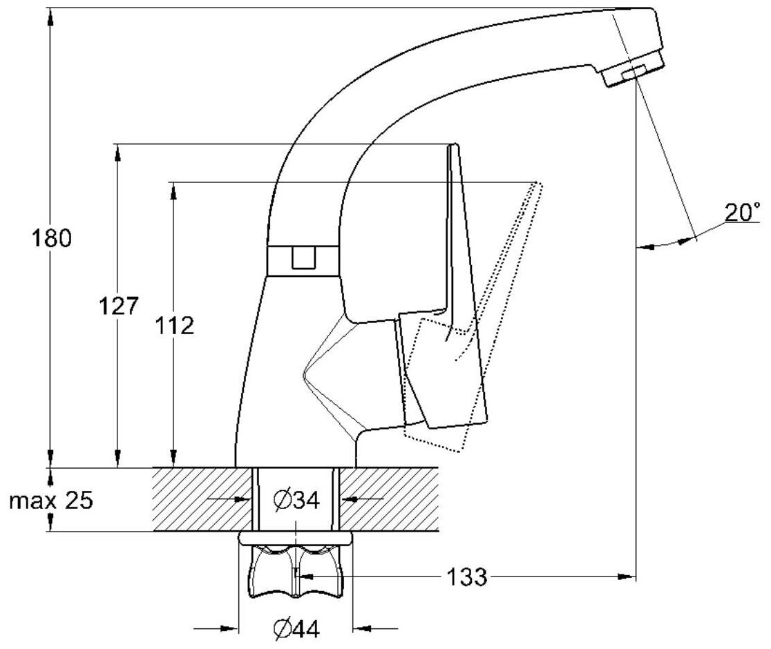 Смеситель для умывальника/мойки 35к Glauf ZOP1-A045 бок. ручка, п/гайку