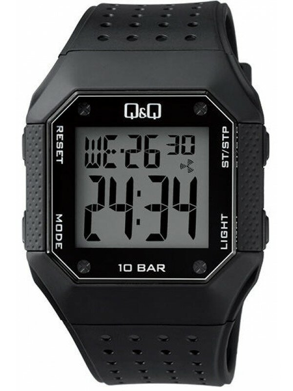 Лучшие цены. Мужские японские наручные часы Q&Q M158-001 [M158 J001Y]. Кварцевый механизм в высокой точностью +/-20 сек в месяц. Прочное пластиковое стекло обеспечит защиту часов от повреждений, разбить такое стекло очень сложно. Высокая водонепроницаемость 100WR (10 Бар) идеально подходит для плавания с маской и трубкой. Корпус часов сделан из высококачественного пластика. Ремешок из натурального полимерного материала с классической застежкой - это стильно, удобно и практично. Источник питания - батарейка. Магазины в вашем городе.