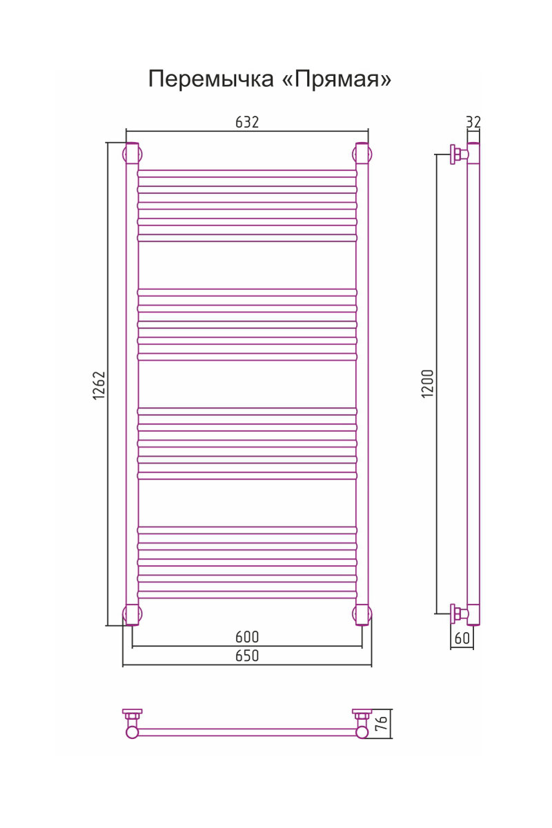 Полотенцесушитель водяной Сунержа 00-0220-1260 Богема+ Полотенцесушитель водяной прямая 1200х600 мм, без покрытия
