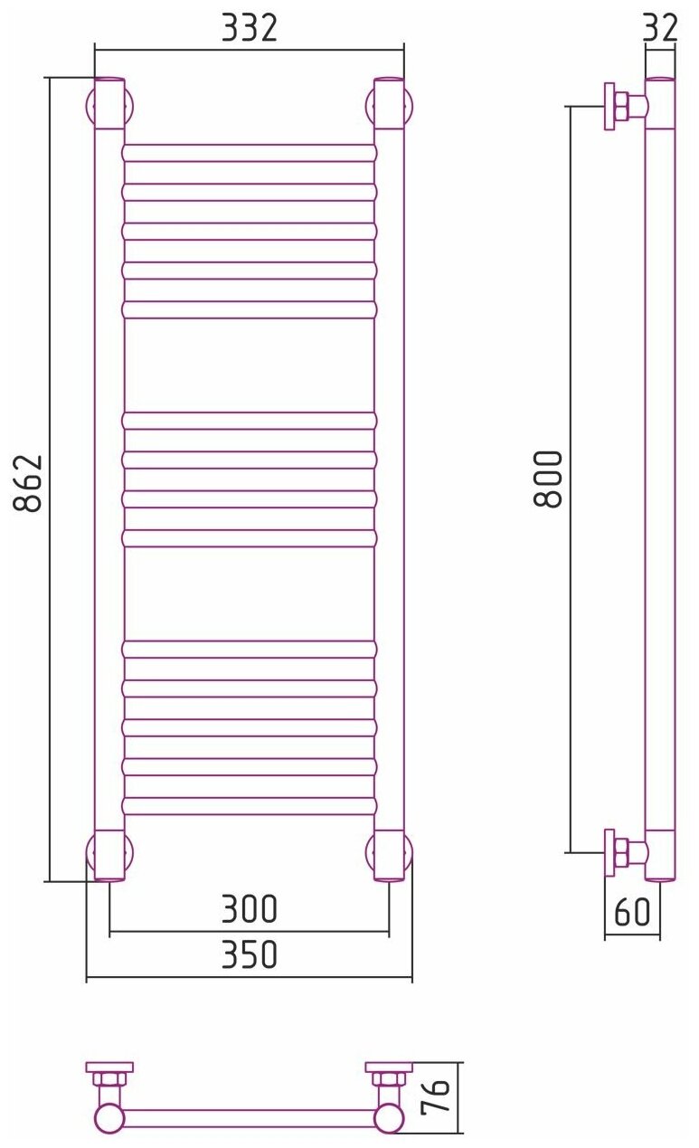 Сунержа Водяной полотенцесушитель Сунержа ДР "Богема+" прямая 800х300