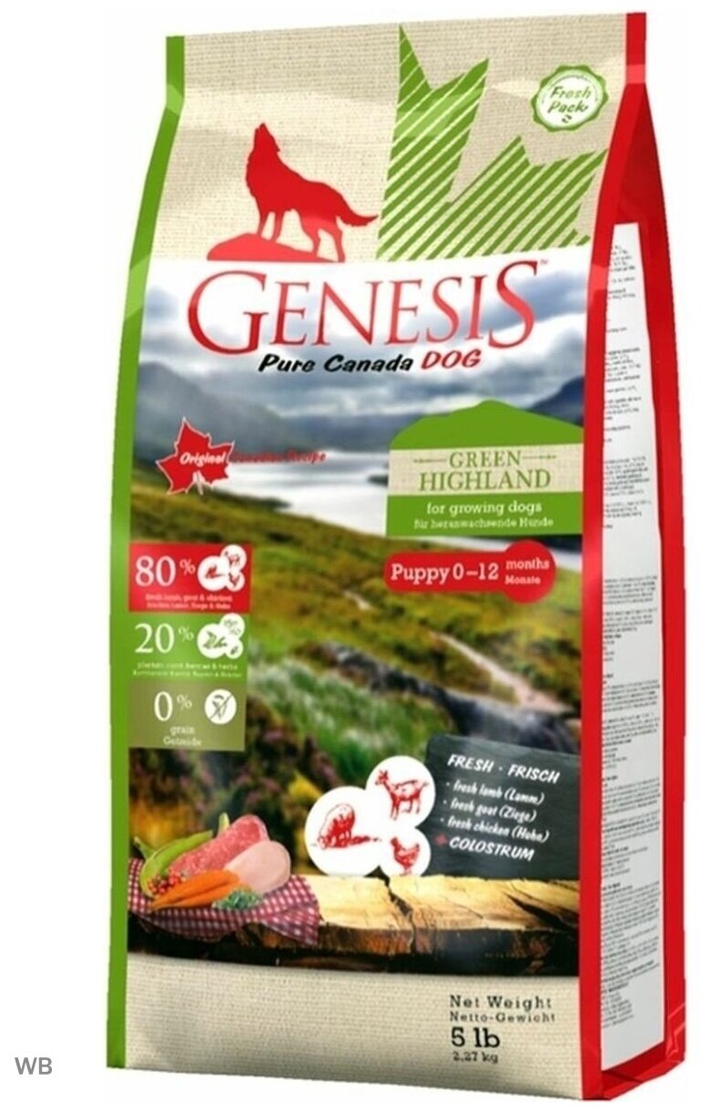 Корм для собак GENESIS PURE CANADA GREEN HIGHLAND PUPPY беззерновой для щенков всех пород, беременных и кормящих сук с курицей, козой и ягненком (2,27 кг)