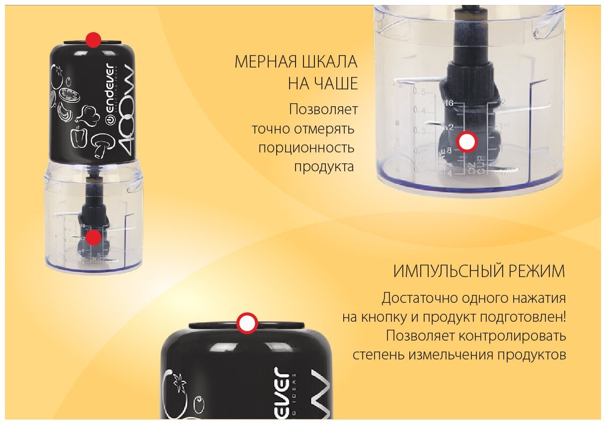 Измельчитель кухонный электрический Endever Sigma-64 / чоппер / 400 Вт / пластиковая чаша объемом 0,5 литр / 2 двойных лезвия
