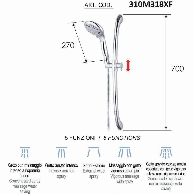 Лучшие цены. Душевой гарнитур Remer 310M318XF. Характеристики: - Цвет: хром. - Материал: латунь, ABS-пластик. - Размеры лейки (ШxГxВ): 12x12x27 см. - Высота душевой штанги: 70 см. - Количество режимов струи лейки: 5. - Система против известковых отложений. - Регулируемый держатель лейки. - Душевой шланг: 150 см. - Монтаж: на стену. - Совместим с проточным водонагревателем. В комплекте поставки: - Душевая штанга. - Ручной душ. - Душевой шланг. - Держатель лейки. - Набор для монтажа. Магазины в вашем городе.