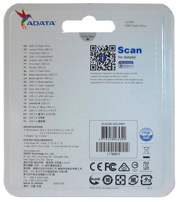 Флеш-накопитель ADATA UV240, 32ГБ, белый