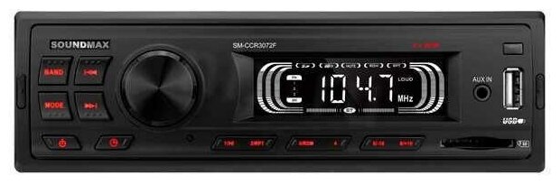 Лучшие цены. Типоразмер 1 din Максимальная мощность 4 х 45 Вт Цвет подсветки зеленый Эквалайзер есть Аудиовход на передней панели есть Питание 12 В Цвет черный Автомагнитола SOUNDMAX SM-CCR3048F обладает внушительной 45-ваттной мощностью выхода по каждому из своих четырех каналов. Ее можно подключить одновременно к паре динамиков и сабвуферу акустической системы автомобиля, чтобы получить отличную громкость и высокое качество звучания любимой музыки во всех частотных диапазонах. Магазины в вашем городе.