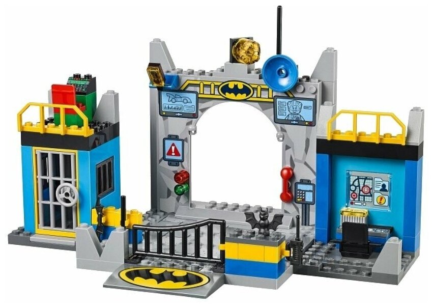 Лучшие цены. Джокер хочет разрушить секретную БэтПещеру! У него есть мощная катапульта, заряженная мощными бомбами, и огромный зеленый молот. Бэтмену и Робина надо помешать злодею во что бы то ни стало! Центральная часть пещеры - въезд, оборудованный семафором и решеткой. Сразу за ним - огромные ворота с сигнализацией и телефоном для связи. В верхней части арки расположены мониторы, на которые поступает сигнал с камер слежения. Слева находится надежная камера для пойманных Бэтменом преступников. Магазины в вашем городе.