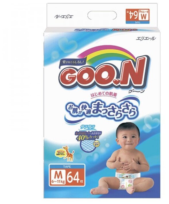 Подгузники (памперсы) Подгузники GOO.N, размер M, 6-11 кг, 64 шт.