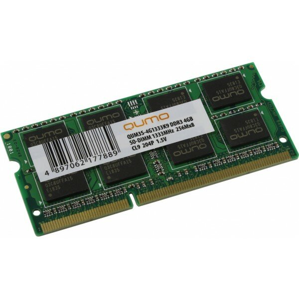 Лучшие цены. Модуль памяти QUMO SO-DIMM DDR3 4GB QUM3S-4G1333K(D)9R/C9 {PC3-10600, 1333MHz. Магазины в вашем городе.