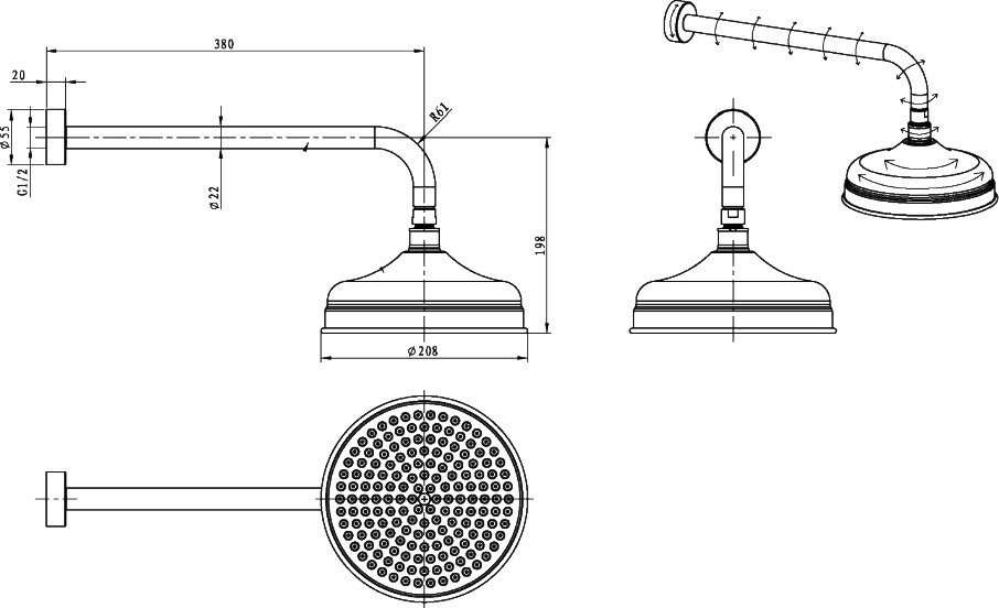 | Тип | верхний душ |