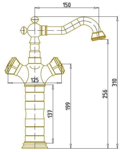 Лучшие цены. Смеситель для раковины Bronze de Luxe 10219. Изящный ретро-стиль в современной интерпретации. Утонченные линии и продуманный до мелочей дизайн станет роскошным украшением вашей ванной комнаты. - Корпус смесителя изготовлен из качественного латунного сплава. Тщательное патинирование придает изделию великолепный блеск и цвет. - Покрыт сантехническим антивандальным лаком: он защищает поверхность изделия от загрязнений и облегчает уход. - Изысканные узоры на корпусе, ручках и носике смесителя. Магазины в вашем городе.