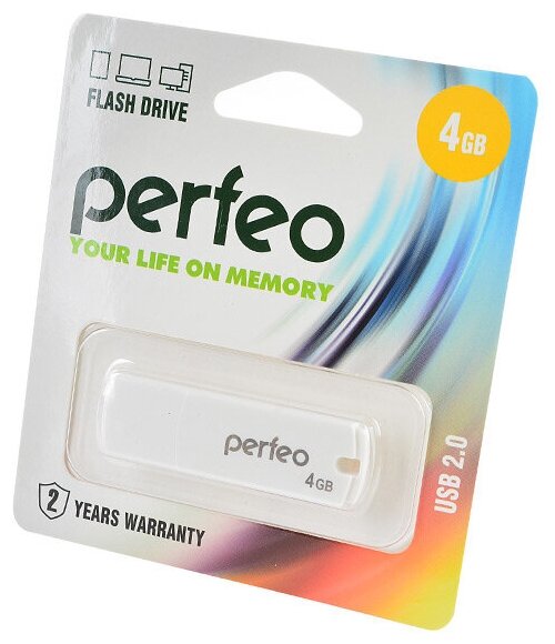 Flash накопитель 4GB белый USB 2.0 - PF-C05W004 BL1 (PERFEO)(код заказа 14601 )
