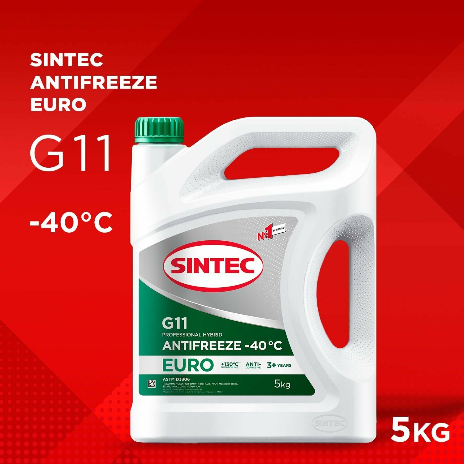 Sintec Антифриз Euro G11 (-40) зеленый 5,5 кг, 500г в , гибридный, силикатный 800554 .