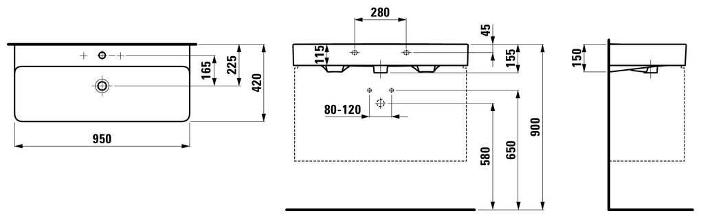 Laufen VAL Раковина 950х420х115мм с 1 отв. под смеситель, цвет: белый (Со склада продаем с базами 4.0241.2.110.26 )