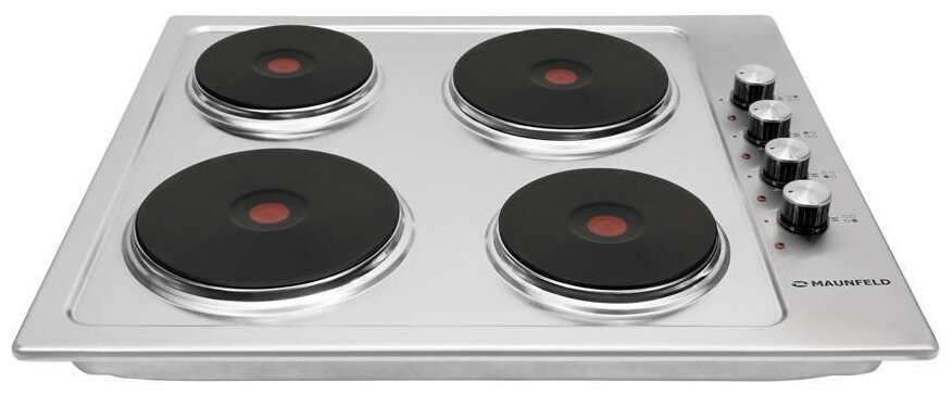 Лучшие цены. Общие характеристики Тип: электрическая Тип подключения: независимая Материал: нержавеющая сталь Цвет панели конфорок: серый Цвет фурнитуры: серебристый Тип поверхности: варочная Управление Тип управления: механическое Регуляторы мощности: поворотные Расположение панели управления: сбоку Индикация Индикация включения: да Конфорки Всего конфорок: 4 Количество электрических конфорок: 4 шт Мощность задней левой конфорки: 1500 Вт Мощность задней правой конфорки: 1500 Вт Мощность передней левой конфорки: 1500 Вт. Магазины в вашем городе.