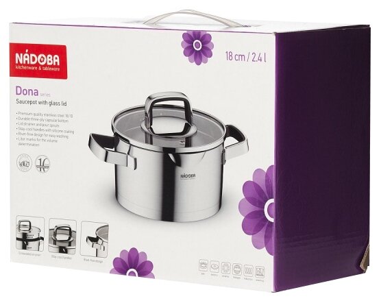 Кастрюли Кастрюля со стеклянной крышкой, 18 см/2,3 л, NADOBA, серия DONA