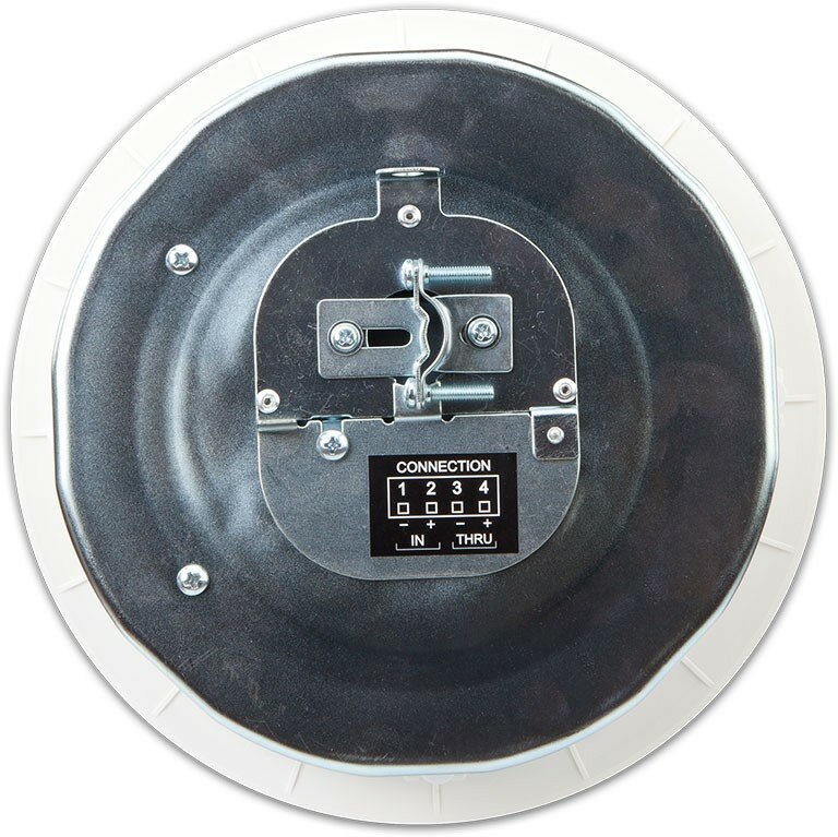 Лучшие цены. Потолочная акустическая система. НЧ динамик: 1 х 6". ВЧ: 0,86". Диапазон частот: 65 Гц – 20 кГц. Номинальная мощность/ напряжение: 30 Вт / 15.5 вольт (RMS). Чувствительность: 89 дБ SPL. Угла раскрытия (-6 дБ): 110 ° (500 Гц до 5 кГц). Максимальный непрерывный SPL: 104 дБ. Максимальный пиковый SPL: 110 дБ. Сопротивление: 8 Ом. Переключатели: 70 В: 30, 15, 7.5, 3.7, 1.9 Вт, 8 Ом. Переключатели: 100 В: 30, 15, 7.5, 3.8 Вт, 8 Ом. Входной разъем: типа Euroblock разъем с параллельными выходными клеммами. Магазины в вашем городе.