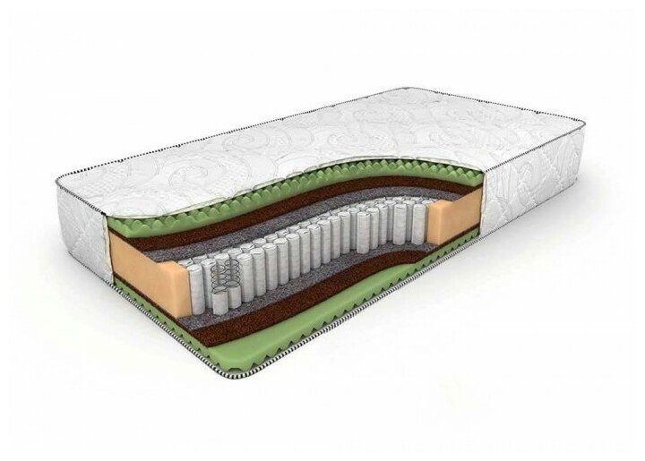 Лучшие цены. Высота 23-24 см. Уровень жесткости средний. Искусственный латекс ErgoFoam, полиэфирное кокосовое волокно Bi-Cocos 1 см, термовойлок, независимый пружинный блок "Мультипакет" (Multipocket) 500 пр./кв. м, термовойлок, полиэфирное кокосовое волокно Bi-Cocos 1 см, искусственный латекс ErgoFoam. Чехол из трикотажной ткани, простеган на холлконе. Максимальный вес на 1 спальное место 140 кг. Магазины в вашем городе.