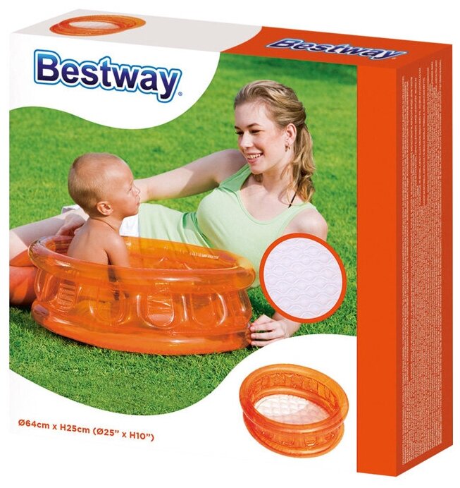 Надувной бассейн Бассейн детский круглый, 64х25 см, 26 л, 51112 Bestway,в ассортименте 3 цвета (желтый,оранжевый,голубой)