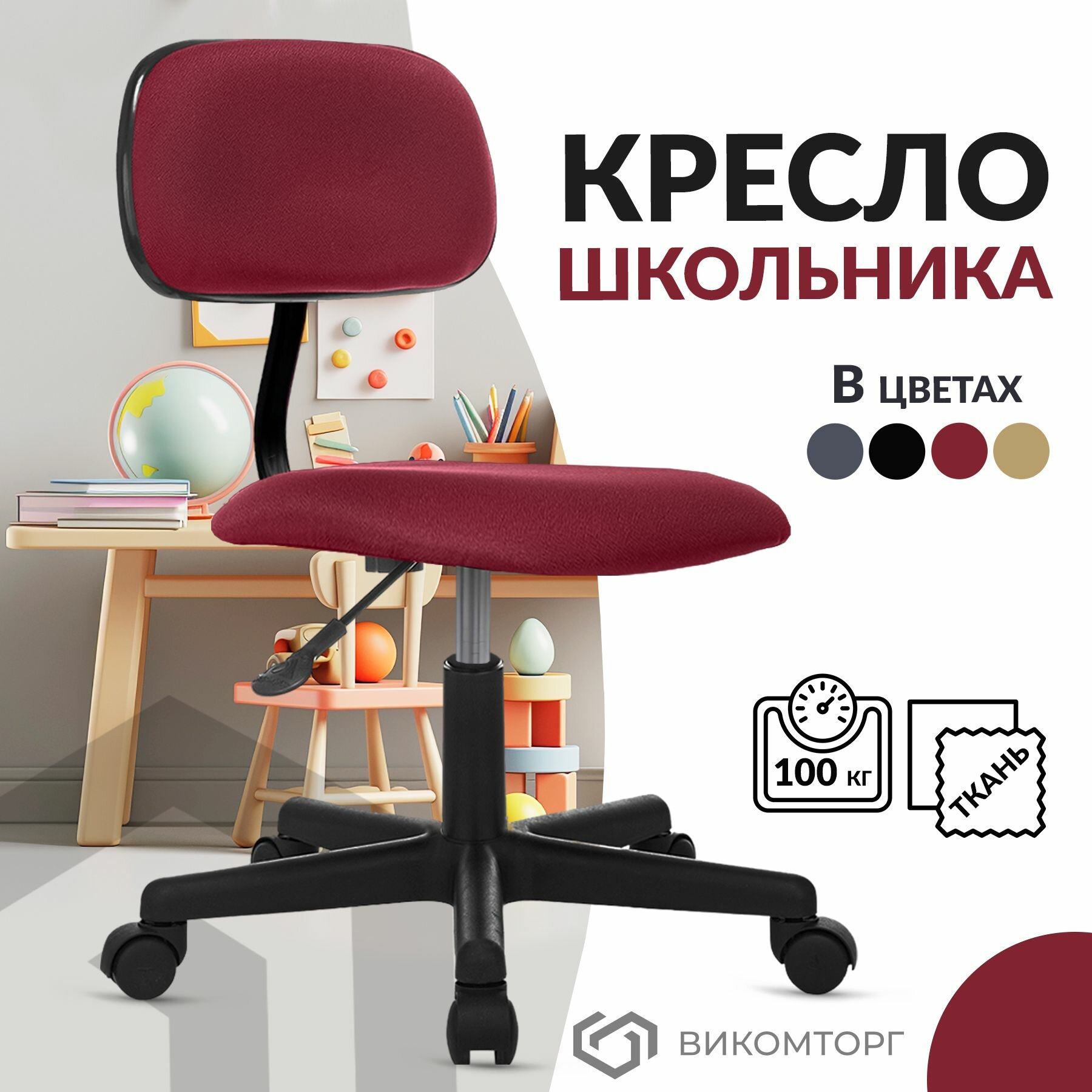 Кресло компьютерное CH-1201NX бордовый, ткань / Кресло для оператора, школьника, ребенка, офисное