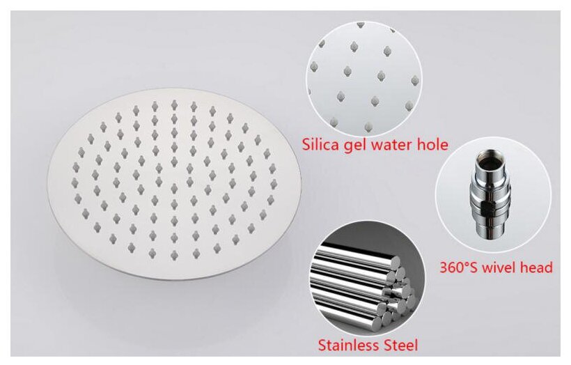 | Комплектация | верхний душ (тропический) / смеситель / настенный кронштейн |