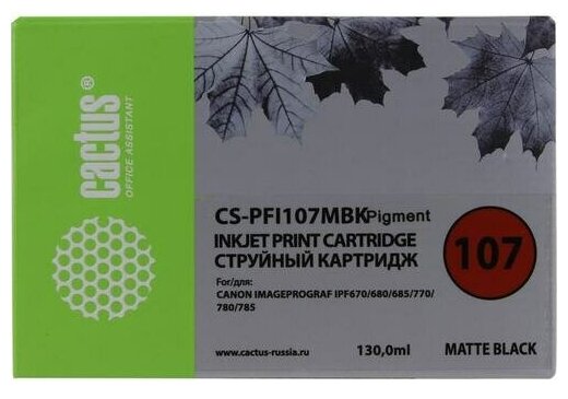 Струйный картридж Cactus CS-PFI-107MBK черный матовый (130мл) для Canon IP iPF670/iPF680/iPF685/iPF77