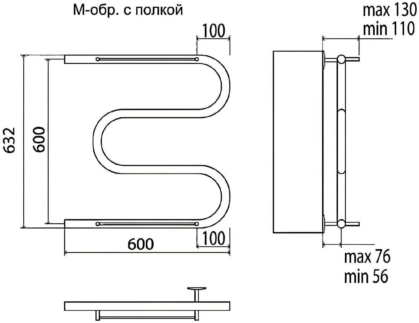 М-образный с полкой полотенцесушитель TERMINUS (600 мм / 600 мм / 600 мм) 5 130 ₽ Подробнее