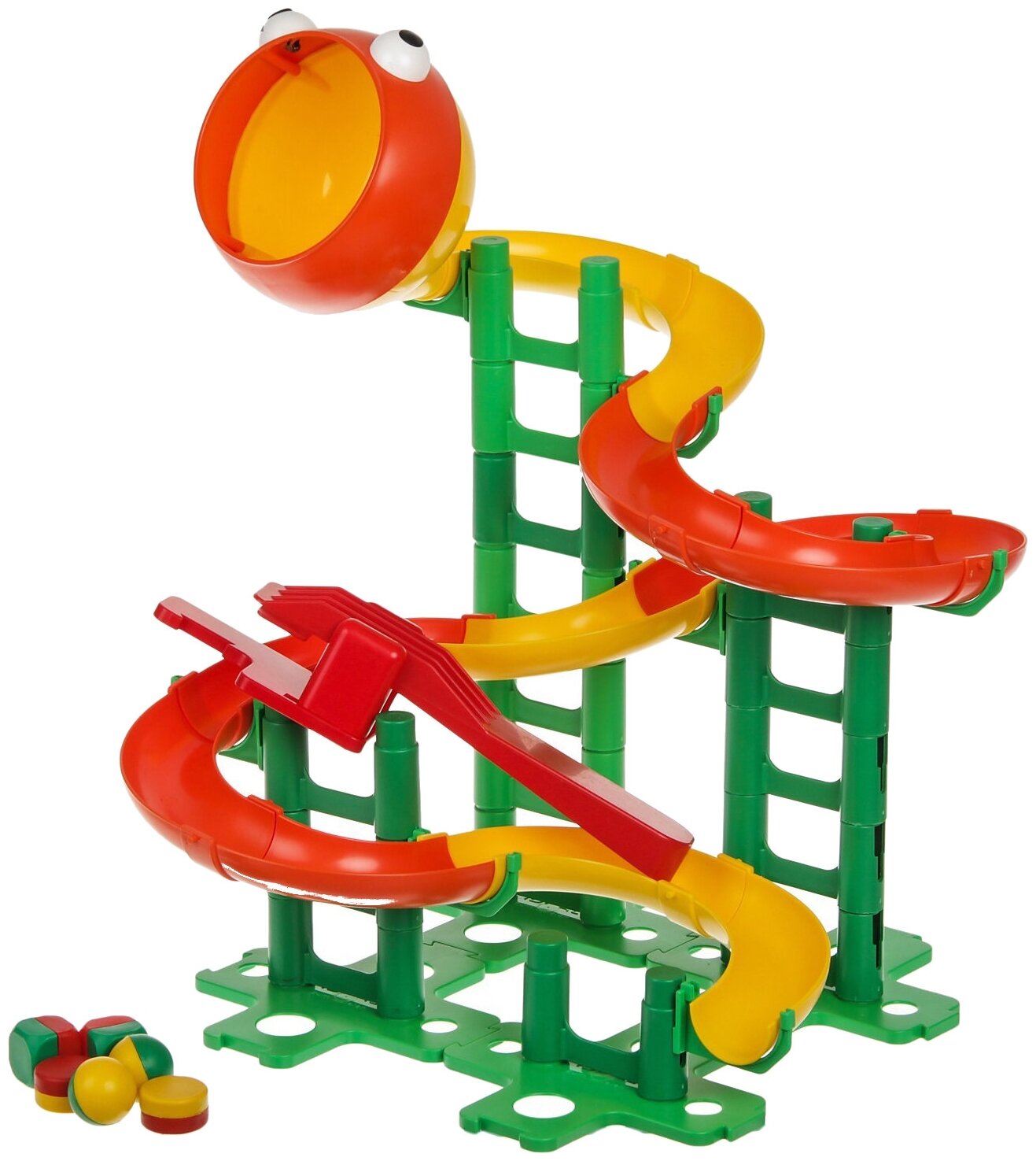 Лучшие цены. Развивающая игрушка-конструктор с катапультой для детей от 3-х лет, изготовлена из безопасной пластмассы с применением пищевых красителей. В комплекте: желоба различных конфигураций, крепления для желобов, подставки, основания для креплений, шайбы, кубики, наклейки, катапульта, сборная голова питона. Магазины в вашем городе.