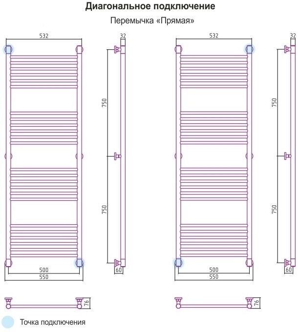 Водяной полотенцесушитель Сунержа Богема+ прямая, с креплением, внутреннее полимерное покрытие, белый матовый